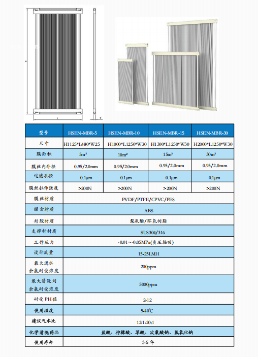 HSEN-MBR 产品使用德国亲水改性助剂后,使得膜产品水通量大大提升,在 25℃下纯水通量>3000L/·h。同时改性后的膜产品无需保护液保存,方便运输与储存。